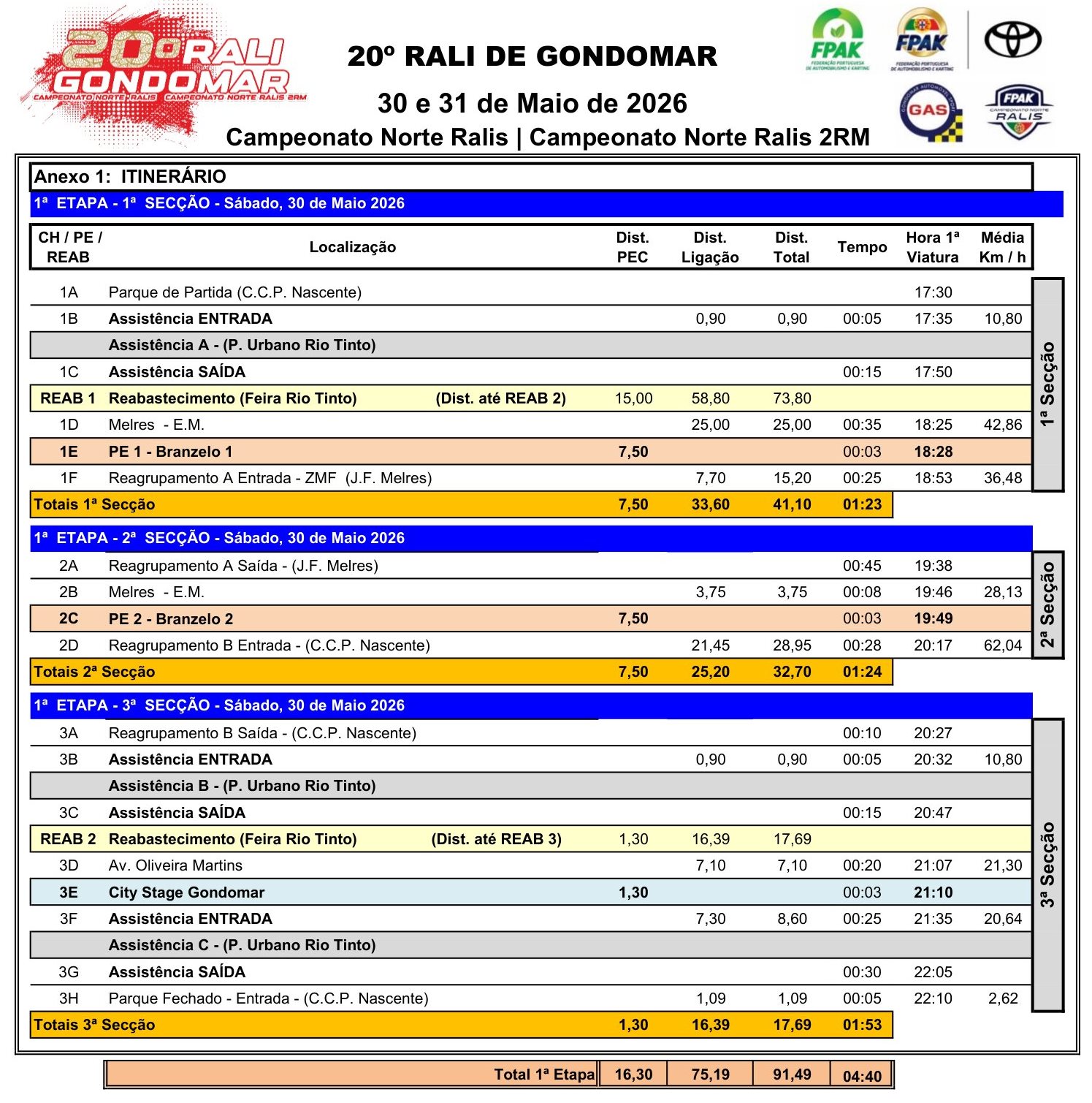 Mapa de Controlos, Itinerários e Horários