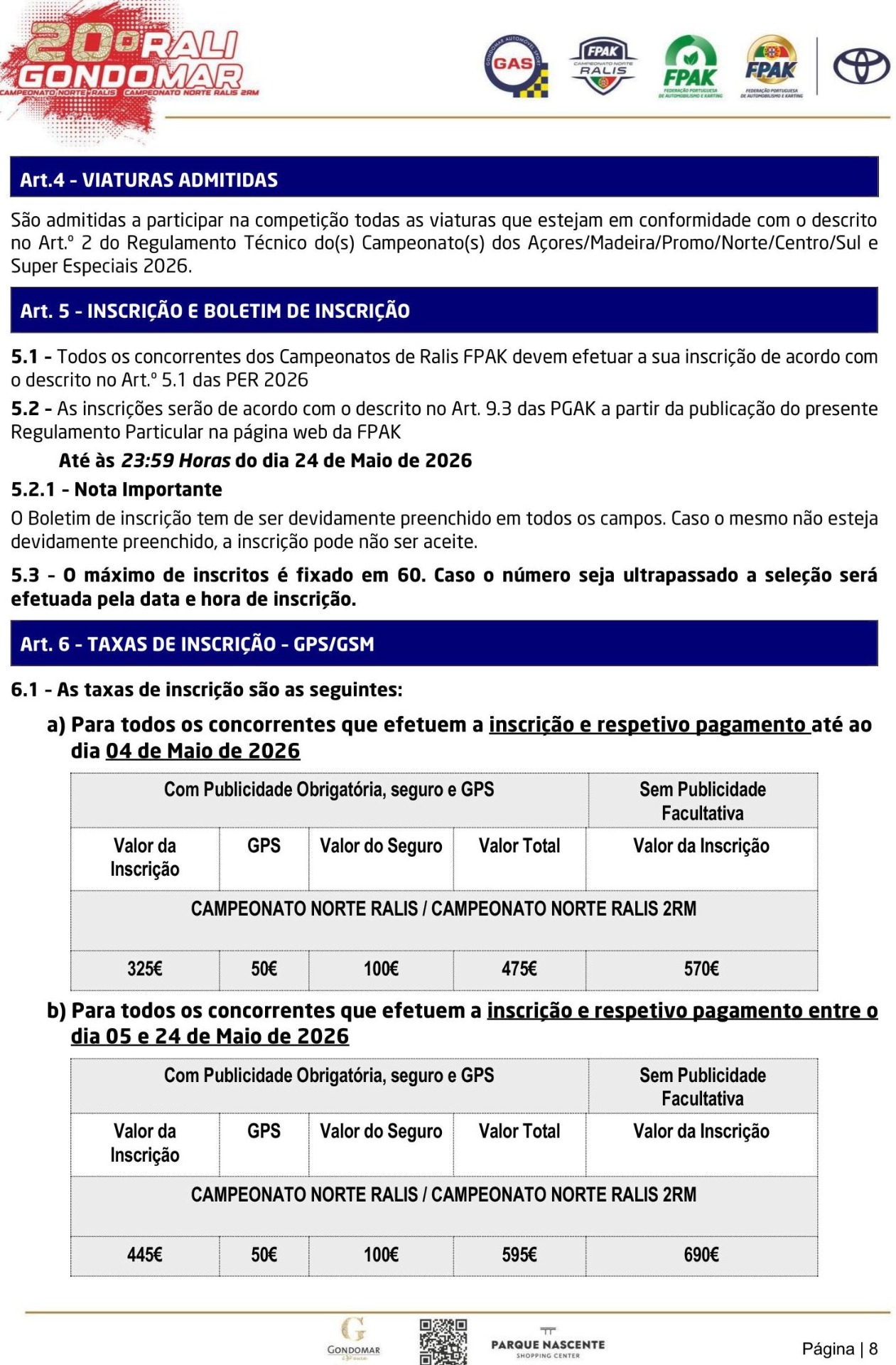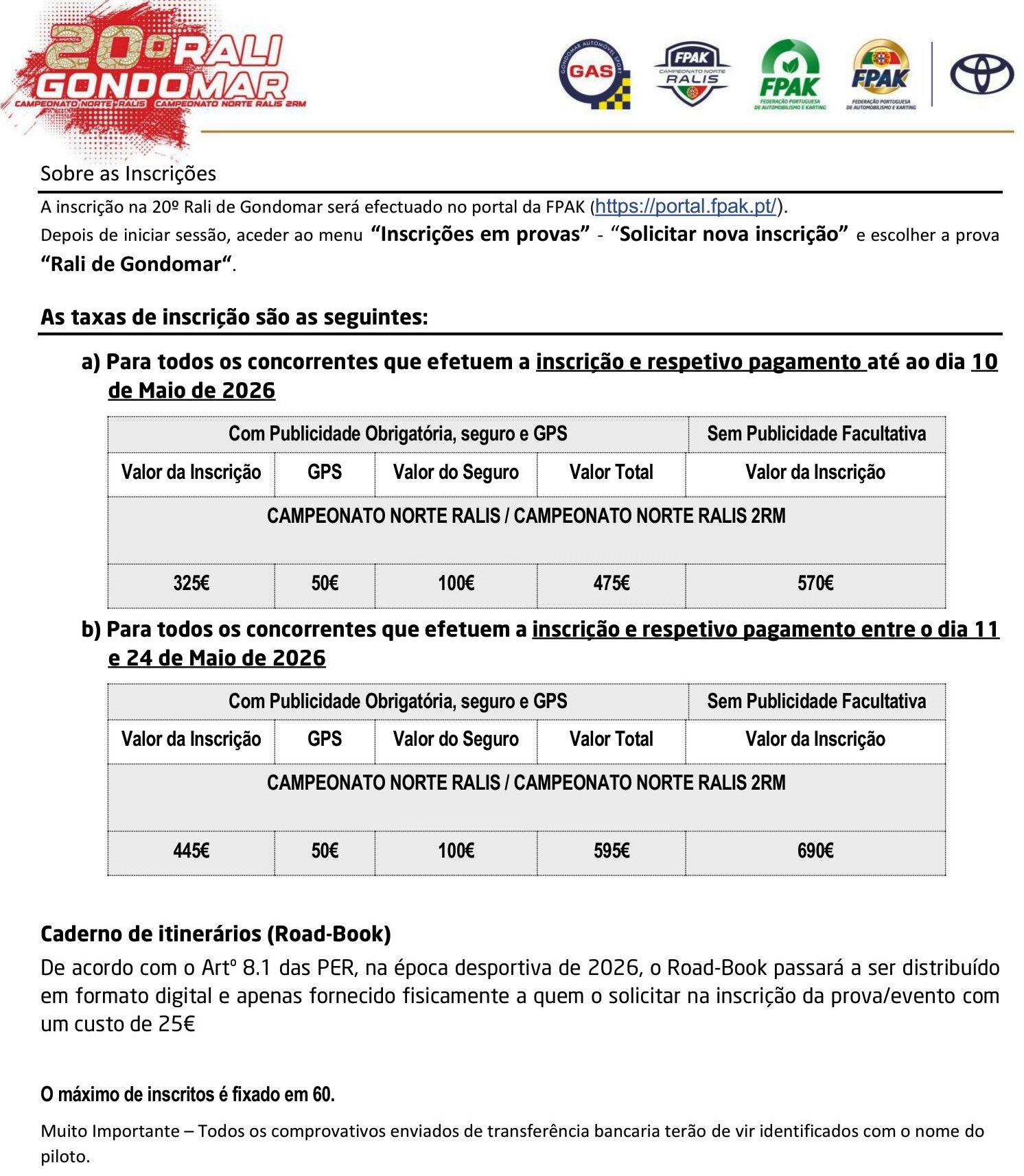 Inscrições no Portal da FPAK + Informações Adicionais + Regulamento Particular + Mapa de Controlos